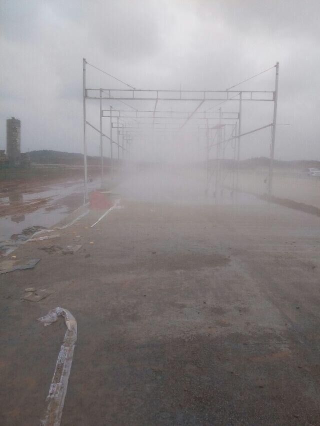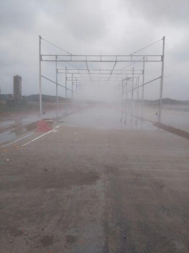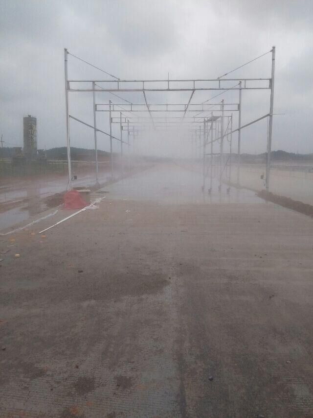 整體龍門架采用方鋼結構,寬度根據(jù)實際路面寬度制作。霧區(qū)覆蓋率近20,霧粒5-15um,擴散快、覆蓋面積大,雨天覆蓋率50、均勻覆蓋降雨。在不影響效果的前提下,本著節(jié)約用水的原則,流量大小均可調節(jié)。